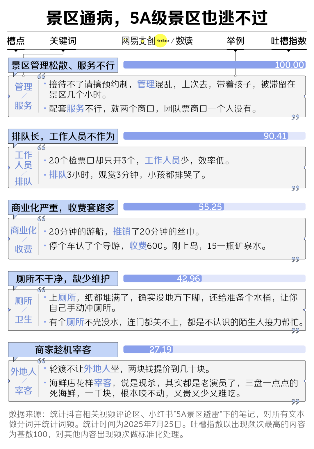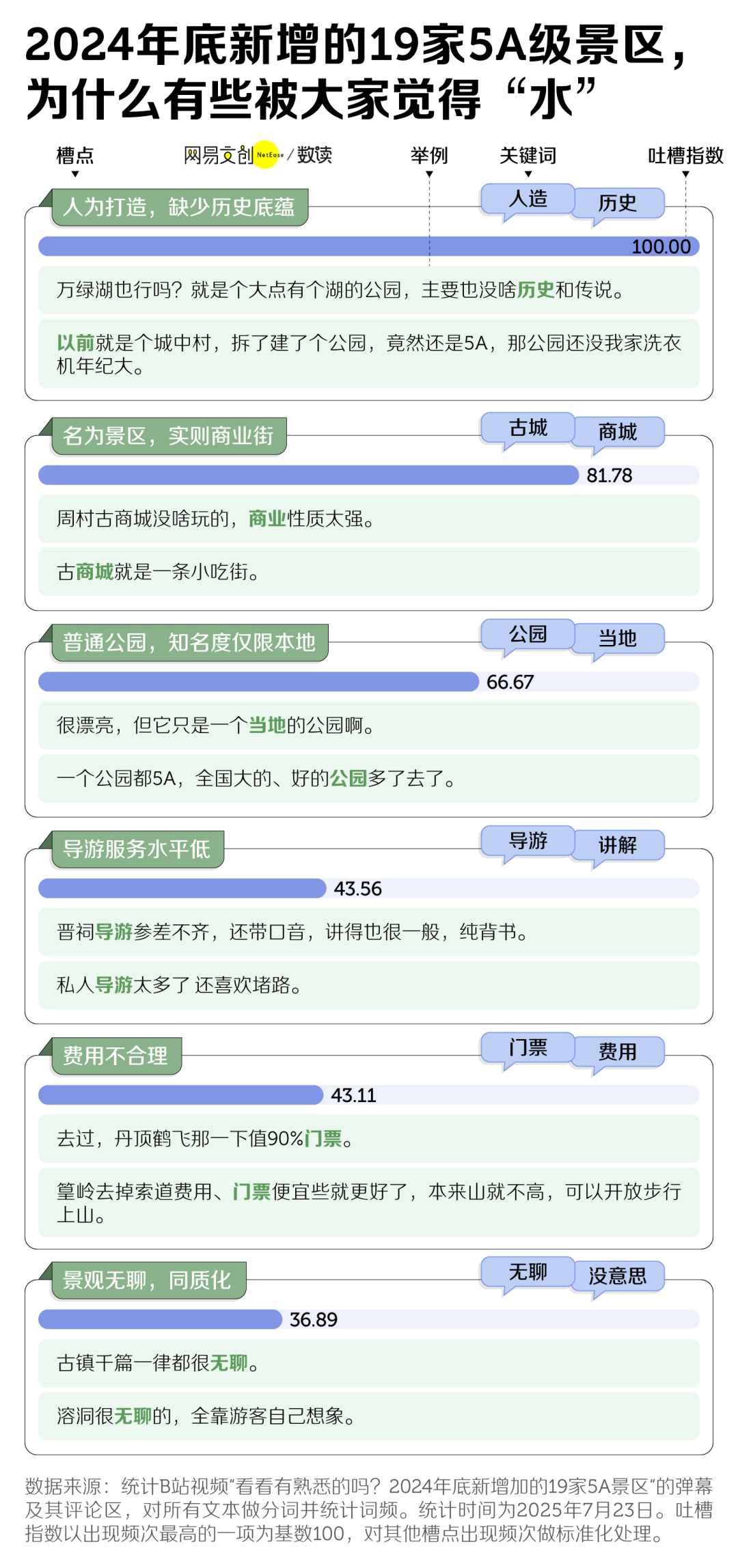 通过梳理网友们对这19家景区的态度,我们发现最刺激大众不满神经的,是景区的人造感。